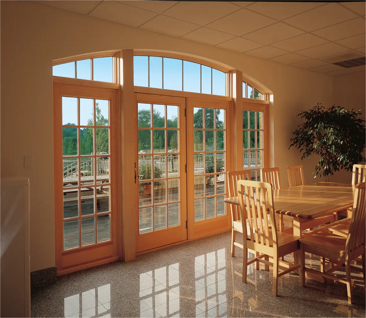 Perfect for upper-story rooms, they provide easy, graceful access to a balcony while simultaneously framing a stunning, expansive view.