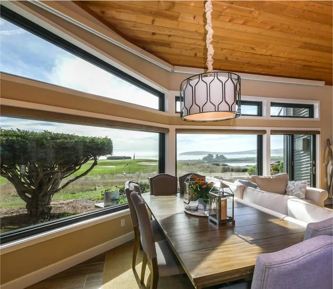 When a room faces a picturesque view, the sheer, unobstructed glass pane provides an expansive, panoramic view, inviting the beauty of your surroundings into your home without visual interruption.