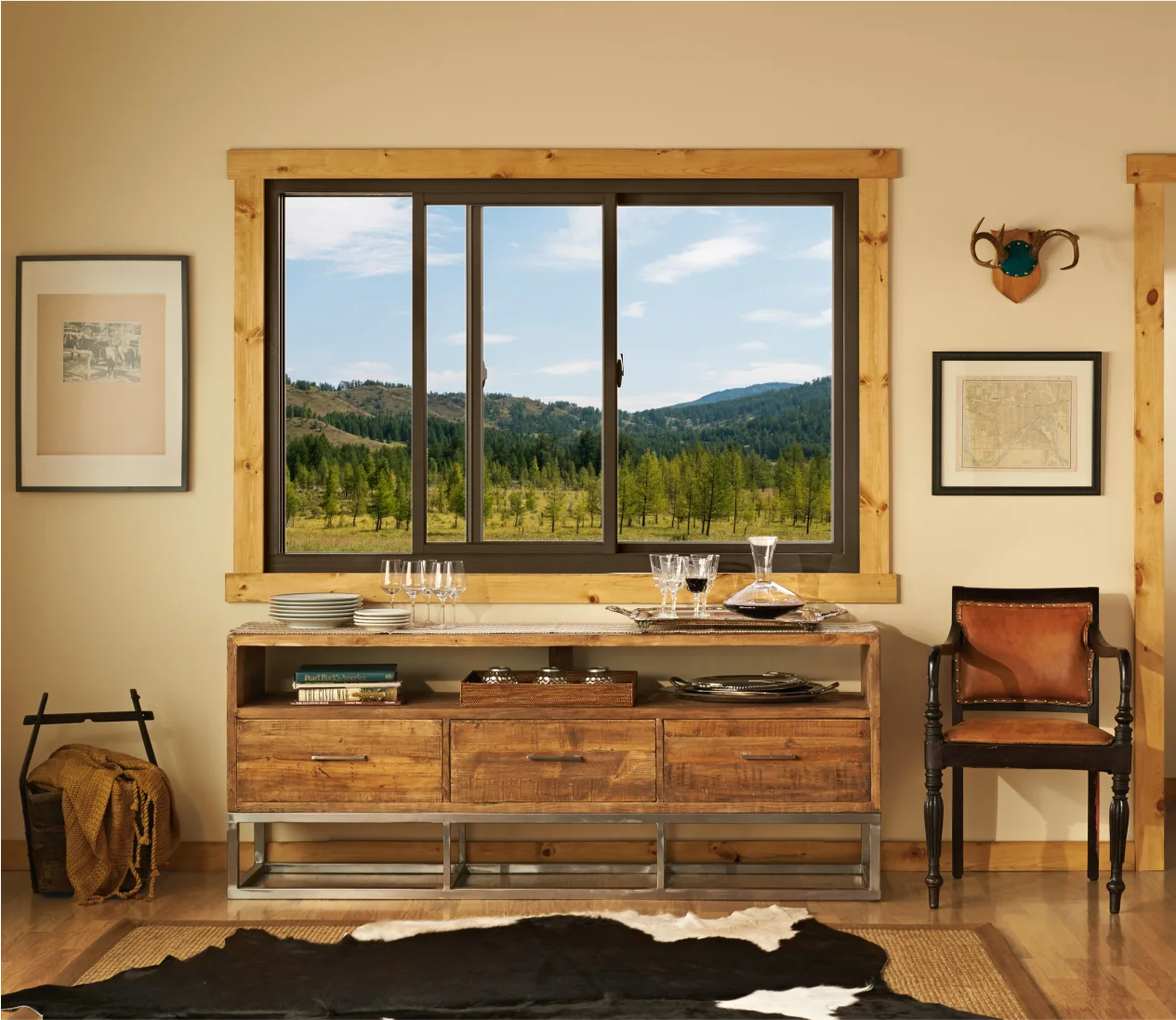 Their space-saving design is defined by sashes that slide sideways—to the left or right—eliminating any outward projection and making them perfect for rooms near decks or walkways.